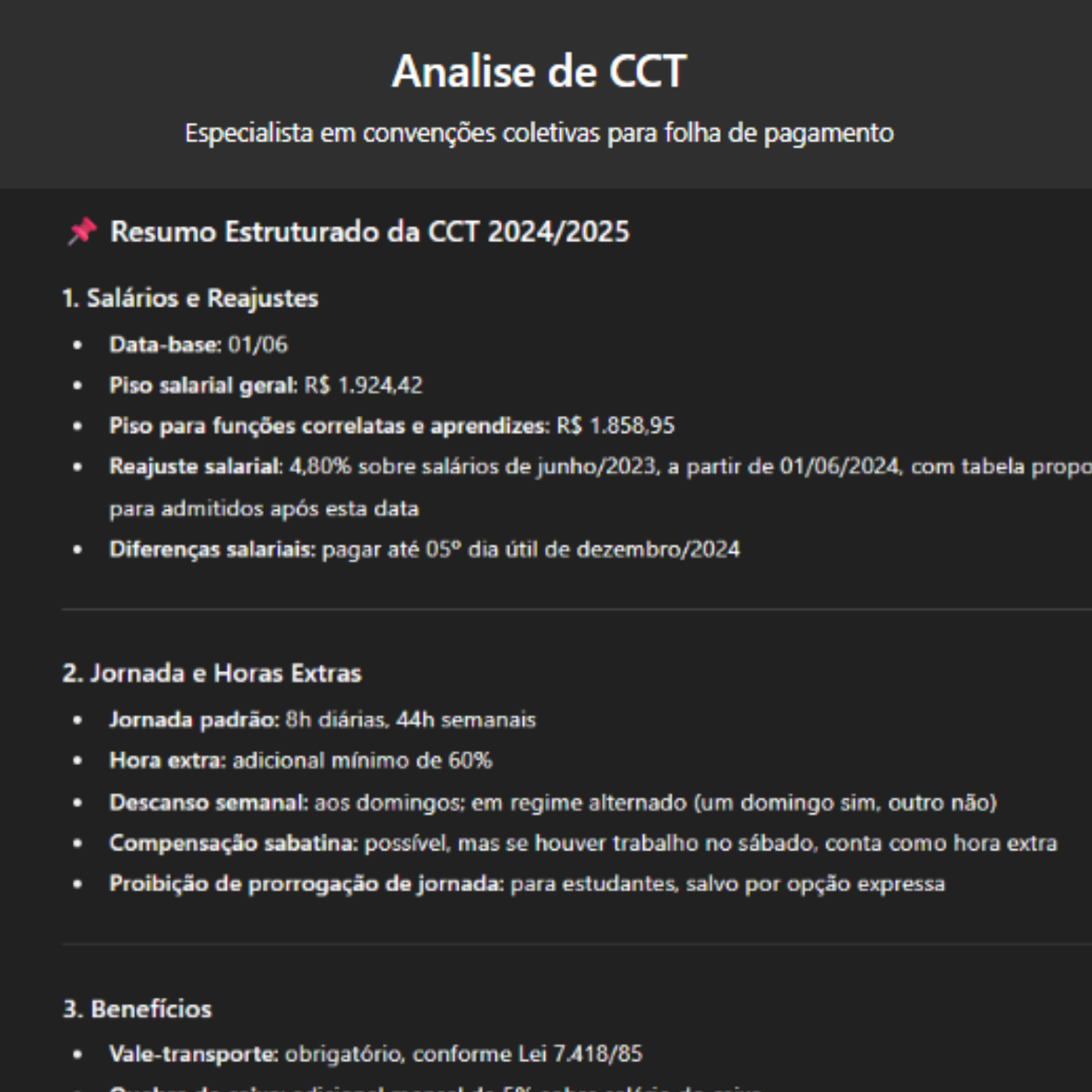 Transforme convenções coletivas complexas em dados práticos para folha, RH e consultoria, economizando horas de leitura.