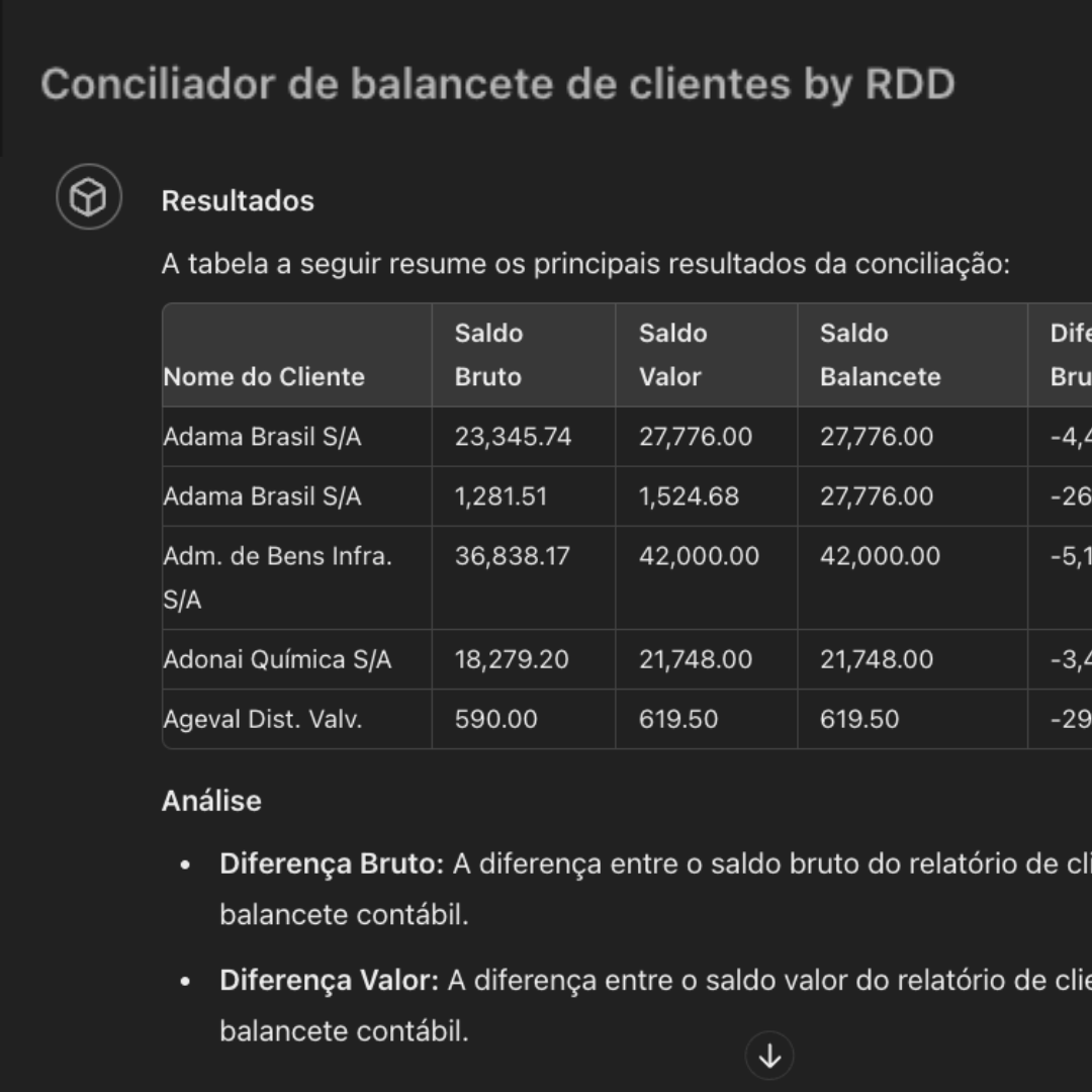 Pega automaticamente balanços e DREs, faz análises estruturadas e gera relatórios prontos, como se tivesse sido feito pelo contador.